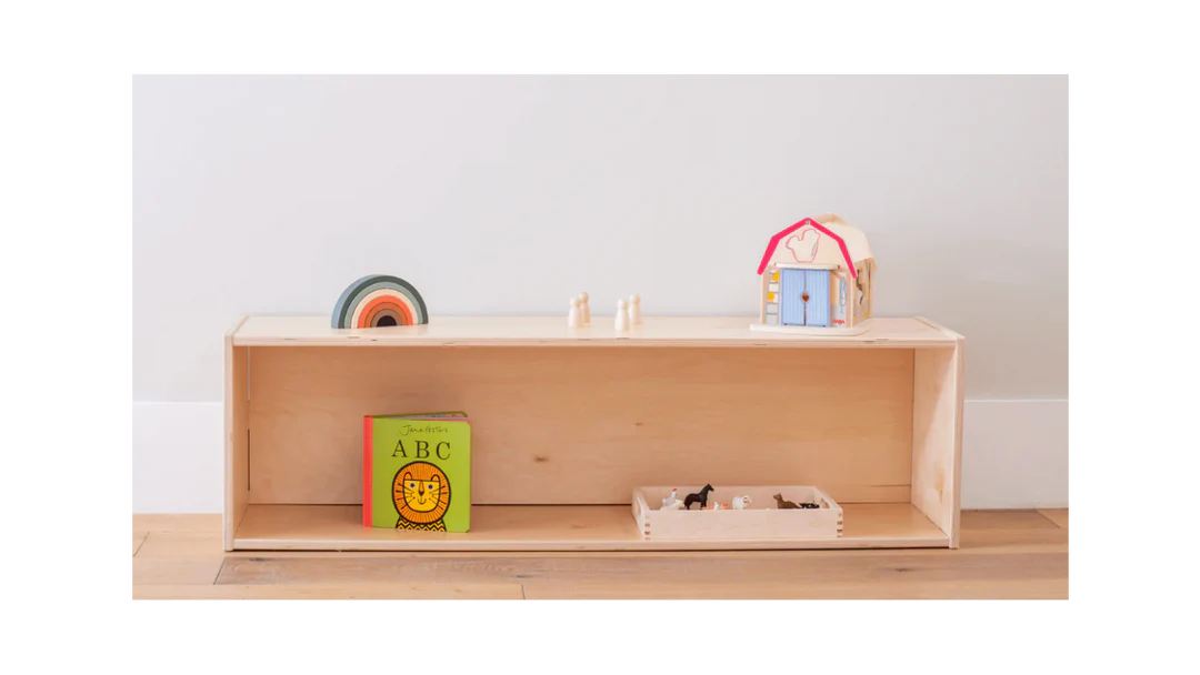 A 45" long, closed back, child-height, open-concept shelf designed to foster independence and organization. Crafted from high-quality materials, it encourages little ones to explore and engage with their environment in a meaningful, Montessori-aligned way.