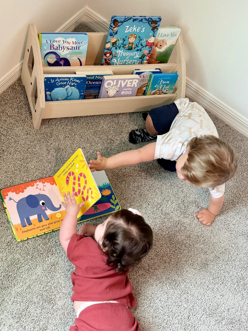 Montessori emphasizes that children thrive when materials are accessible at their level, allowing self-directed learning without constant adult assistance. When books display covers-out at floor height, even crawling infants can see options, make independent choices, and retrieve books themselves—building autonomy, confidence, and the understanding that they're capable of meeting their own needs. The curated selection prevents overwhelm while the easy re-shelving (just place the book in the slot) enables children to complete the full cycle: select, read, return. This creates order, teaches respect for materials, and fosters intrinsic motivation to engage with books rather than waiting for parents to retrieve them.